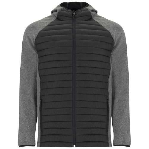 Giacca unisex in due tessuti. Cappuccio fisso regolabile. Maniche raglan. Maniche, inserti laterali e cappuccio in tessuto softshell. Tessuto imbottito morbido al tatto sulla parte anteriore e posteriore. Cerniera invertita con protezione per il mento e tiretto abbinato. Due tasche anteriori con cerniera. Bordo elastico abbinato sul colletto, sui polsini e sull’orlo. Etichetta rimovibile. Modello anti-vento. Il modello è alto 184 cm ed indossa una taglia L, la modella è alta 174 cm ed indossa una taglia S.