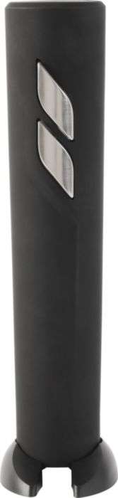 Apribottiglie elettrico in ABS con finitura nero opaco, due pulsanti in alluminio azionano l'apribottiglie mentre la base funge anche da taglia-pellicola, batterie incluse