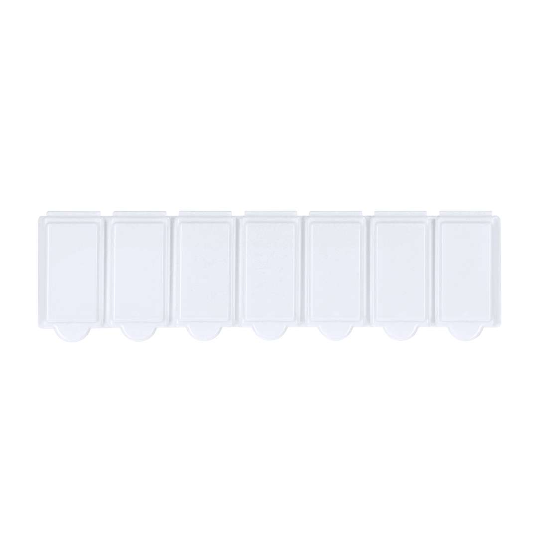 Dispenser settimanale in resistente materiale PP di finitura bianca solida. Include 7 scomparti individuali con chiusura di sicurezza. Senza BPA.