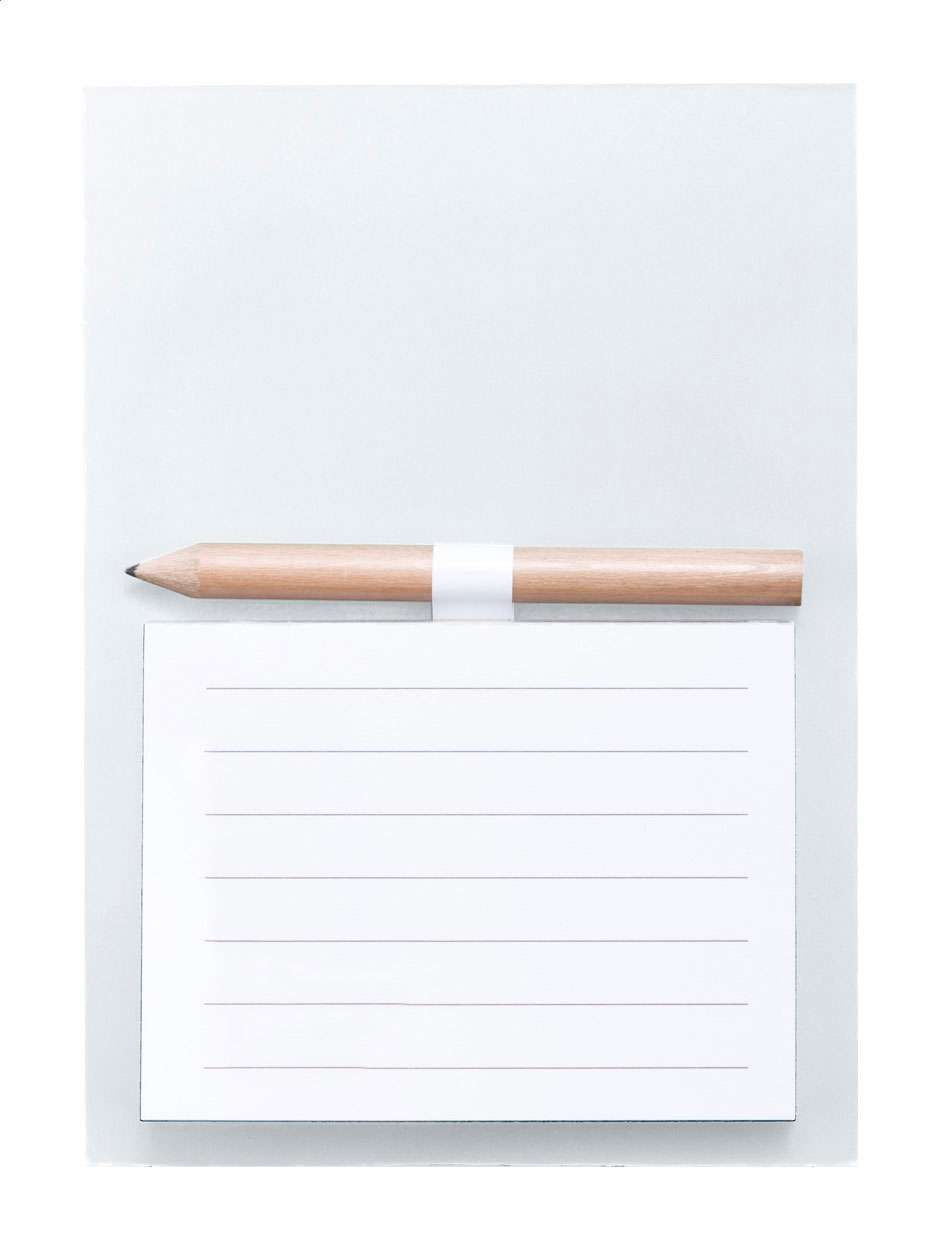 Magnete frigorifero colorato con blocco note da 40 fogli e mini matita in legno.