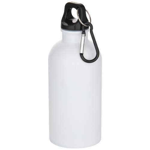 Questa borraccia da 400 ml, resistente e leggera, consente di non trascurare l'idratazione ed è realizzata in acciaio inossidabile riciclato certificato RCS con uno speciale rivestimento per la stampa a sublimazione. È l'accessorio perfetto per lo sport, le gite o per l'ufficio. La borraccia a parete singola Oregon è dotata di tappo a vite e di un'ampia superficie per aggiungere qualsiasi tipo di logo. Per evitare di perderla, è possibile agganciare saldamente il moschettone in dotazione (non adatto per l'arrampicata) a una borsa.