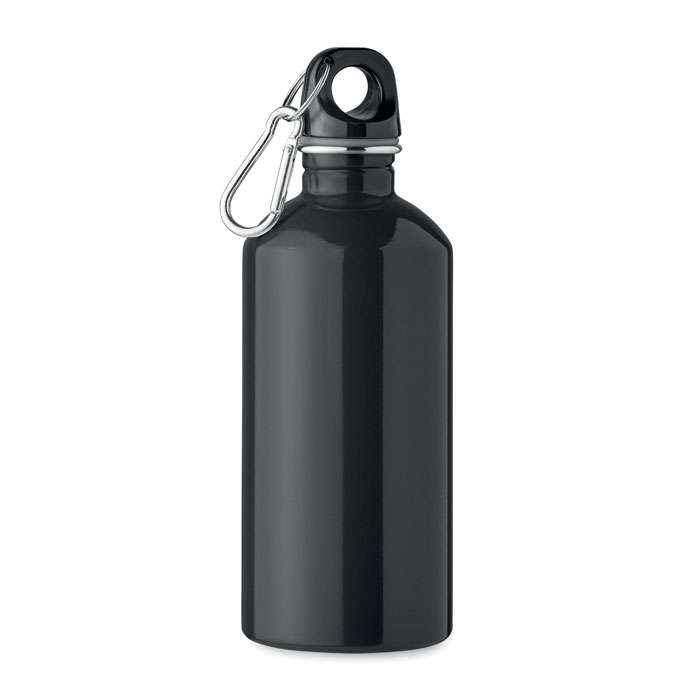 Bottiglia monostrato in acciaio inox riciclato (90% acciaio inox riciclato e 10% acciaio inox) con moschettone. 500 ml. Stampa a sublimazione disponibile solo sull'articolo bianco. Senza perdite.