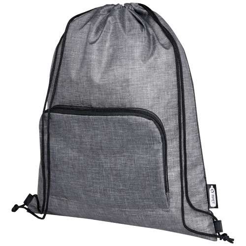 La borsa pieghevole Ash realizzata in materiale riciclato presenta uno scomparto principale con chiusura a coulisse e una tasca anteriore con zip per ripiegarla all'interno, trasportarla e riporla con facilità.