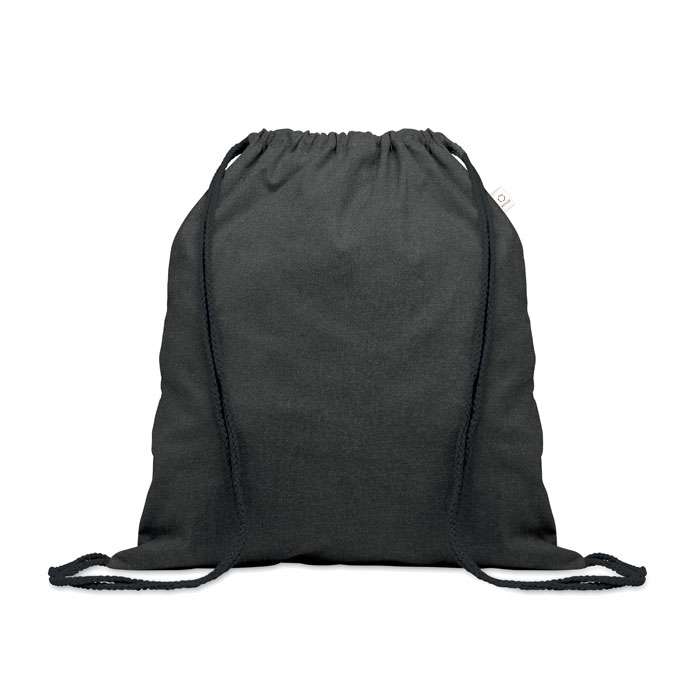 Shopper in cotone riciclato pre-consumo (70%) e RPET (30%). 140 gr/m². Questo articolo può restringersi dopo la stampa.