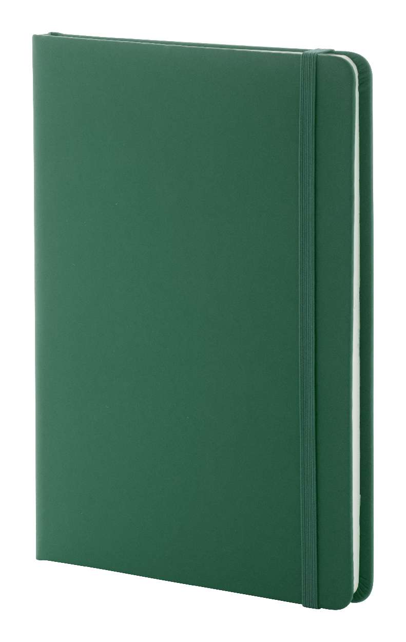 Quaderno con copertina in PU riciclato da 100 fogli in carta riciclata a righe. Segnalibro in colore coordinato ed elastico. Formato A5.