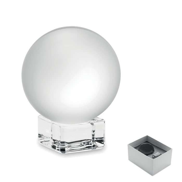 Premio o trofeo rotondo in vetro con base. Presentato in una confezione regalo.