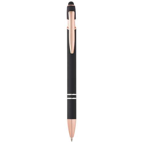 La penna a sfera Nanna con finitura oro rosa, presenta un fusto realizzato in alluminio riciclato con stilo tattile in silicone. L'alluminio riciclato riduce la quantità di rifiuti nelle discariche e aiuta a conservare le risorse naturali con l'obiettivo di ridurre le emissioni di gas serra. Colore dell'inchiostro: Blu. Capacità di scrittura: 800 metri. Dimensione del pennino: 1,0 mm.Colore inchiostro: Blue