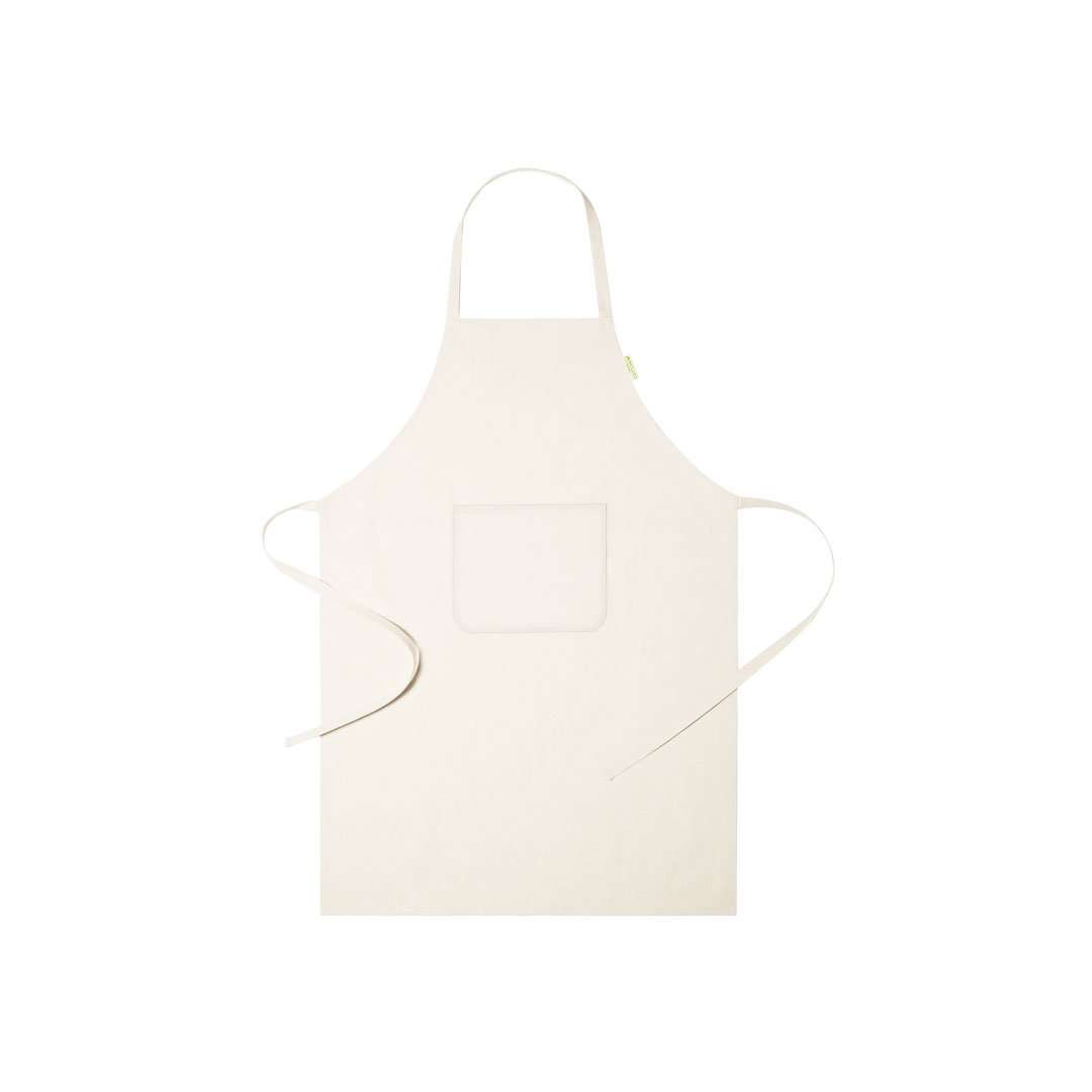 Grembiule linea Nature, realizzato in materiale di cotone organico al. Con tasca frontale e spalline regolabili, taglio sotto il ginocchio. Etichetta distintiva in cotone biologico.