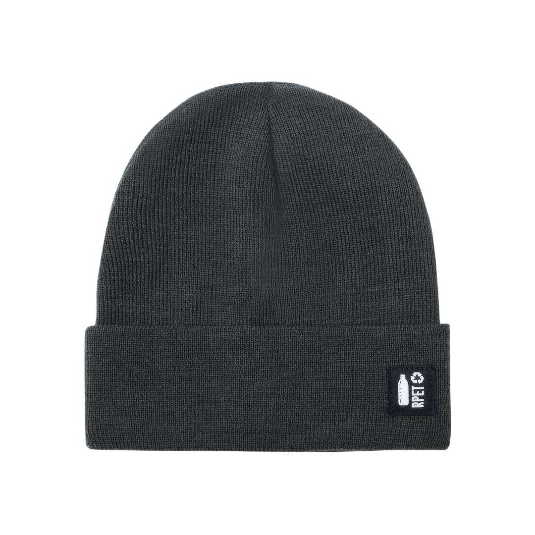 Morbido e caldo cappello a maglia della linea naturaleine poliestere RPET, realizzato in plastica riciclata per favorire il riutilizzo dei rifiuti plastici e contribuire alla sostenibilità del pianeta. Con orlo sul davanti, disponibile in un'ampia gamma di colori. Etichetta con logo RPET.