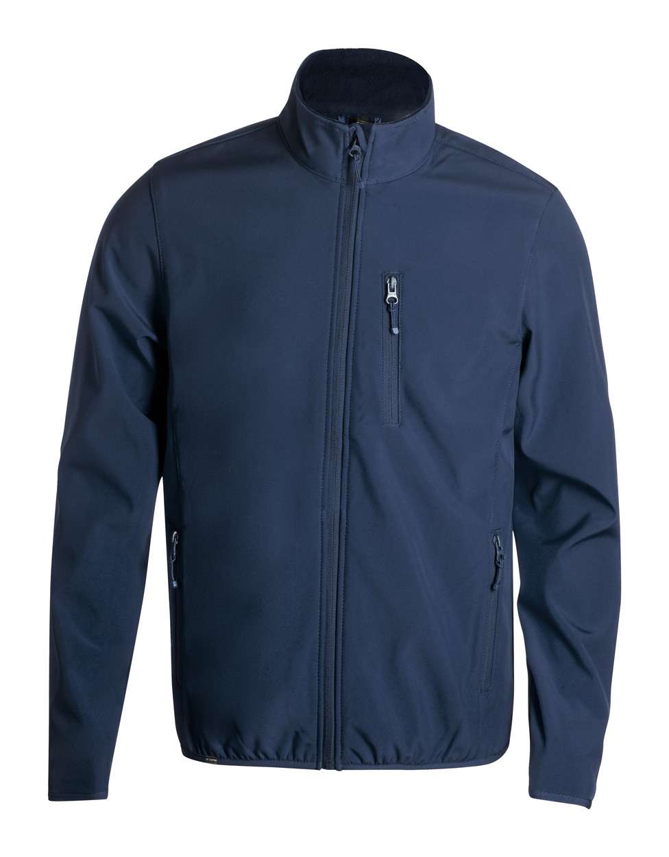 Giacca softshell in RPET traspirante, impermeabile e antivento con zip e tasche sul petto e laterali. Esterno: 92% poliestere RPET e 8% elastan. Interno: micropile in 100% poliestere RPET. 300 g/m².