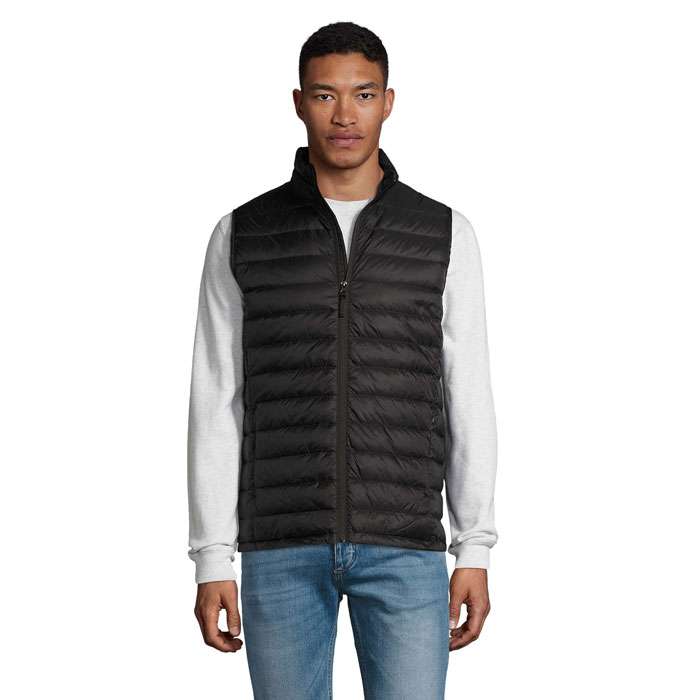 SOL'S WILSON BW UOMO. Piumino leggero da uomo in piuma. Tessuto esterno e fodera: 100% poliammide. Imbottitura 60% Sorona 40% poliestere riciclato. POLIAMMIDE 380T, Apertura con zip, 2 tasche anteriori con zip, 2 tasche interne Piccolo collo alto, Taglio aderente, Sistema di piegatura ''In bag'' con stopper. OEKO-TEX®. Venduto solo con la stampa.