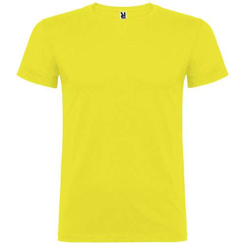 T-shirt a maniche corte con girocollo a doppio strato in elastan, realizzata in tessuto tubolare per adulti. Copri cuciture rinforzate sul colletto. Etichetta rimovibile. Il modello è alto 120 cm ed indossa una taglia 5/6.