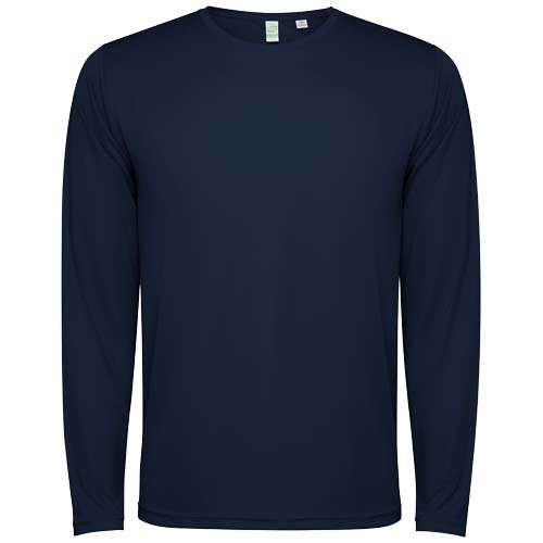T-shirt tecnica unisex a maniche lunghe. Collo con cuciture abbinate. Orlo posteriore leggermente più lungo di quello anteriore. Cuciture laterali spostate in avanti.