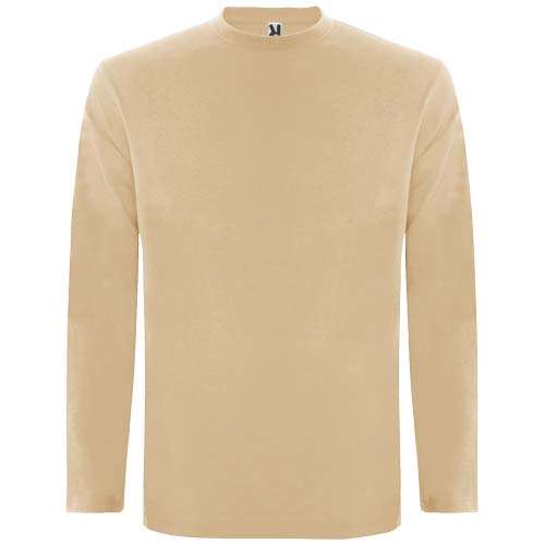 T-shirt a maniche lunghe in tessuto tubolare e girocollo a 4 strati. Copri cuciture rinforzate sul colletto e sulle spalle. Senza polsini. Etichetta rimovibile. Design tubolare per le taglie da adulti e cuciture laterali per le taglie da bambino. Il modello è alto 185 cm ed indossa una taglia L.