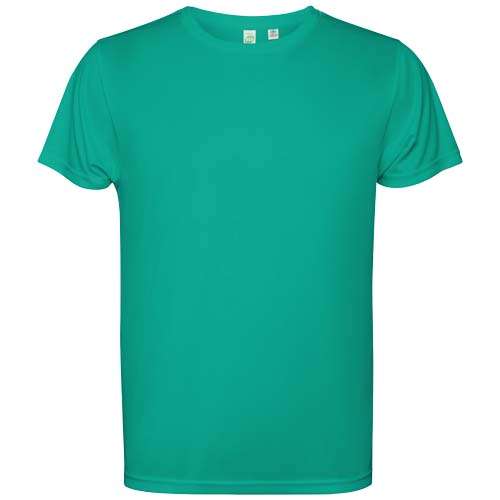 T-shirt tecnica a maniche corte da uomo. Collo con cuciture abbinate. Orlo posteriore leggermente più lungo di quello anteriore. Cuciture laterali spostate in avanti.