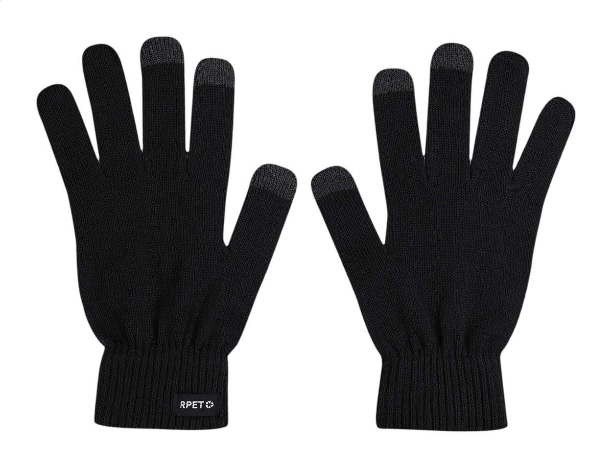 Guanti capacitivi in poliestere RPET con rivestimento speciale su 3 dita. Taglia unica per adulti.