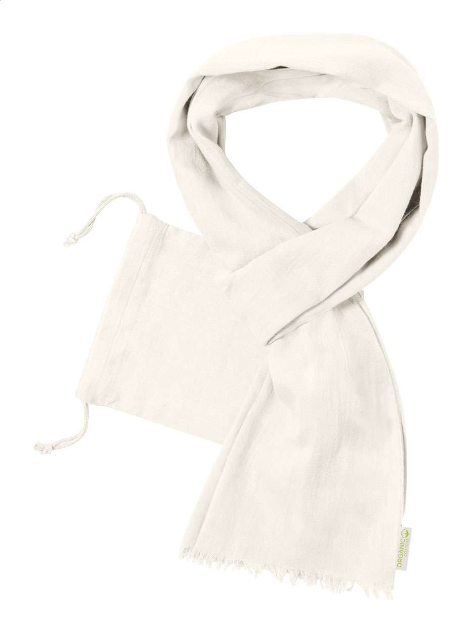 Elegante sciarpa da donna in cotone biologico, con sacchetto a coulisse coordinato. 100% cotone biologico, 60 g/m².