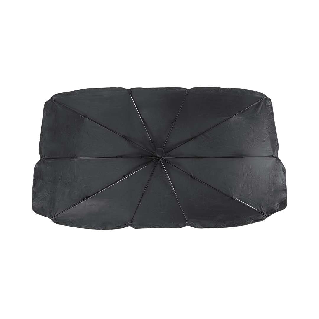 Parasole per auto pieghevole. Dimensione 140x78cm. Con meccanismo di apertura manuale e copertura in poliestere inclusa.