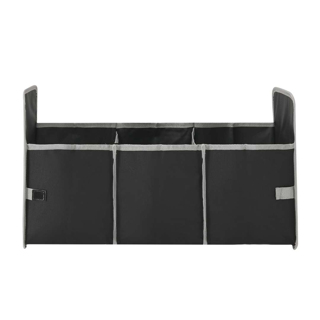 Organizzatore pieghevole in poliestere RPET 600D. Ideale per il bagagliaio dell’auto. Con manici rinforzati, tasca frontale in rete grigia e cinturini laterali in velcro per un migliore fissaggio. Interno con tre scomparti per riporre oggetti.Il materiale RPET è realizzato in plastica riciclata, promuovendo il riutilizzo dei rifiuti plastici e sostenendo la sostenibilità ambientale.