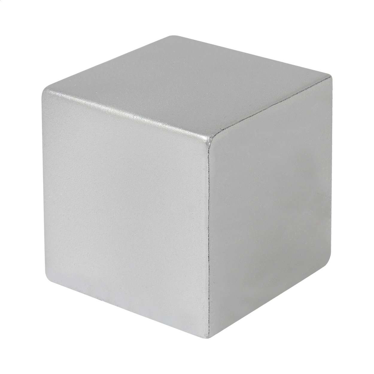 Cubo antistress in schiuma di poliuretano con finitura metallizzata.