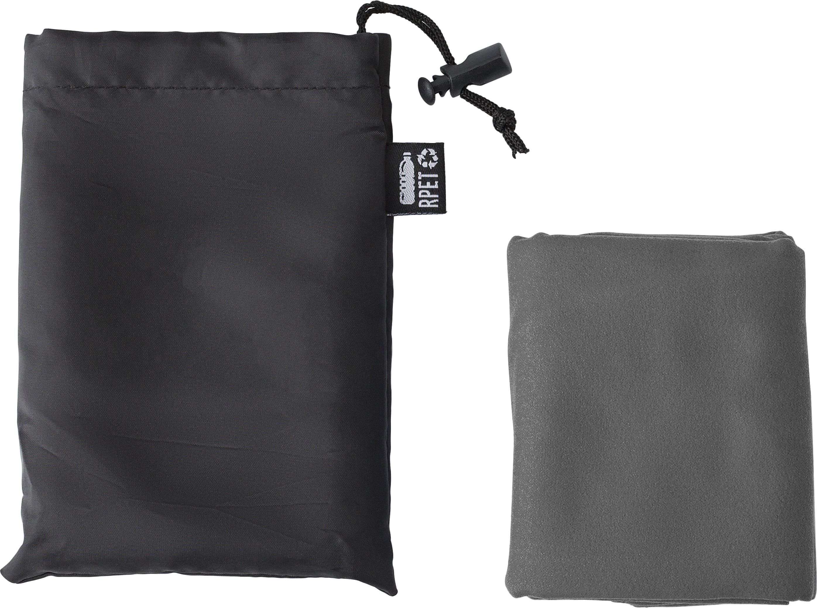 Asciugamano in rPET, dimensioni 79 cm x 30 cm, in custodia rPET con chiusura a coulisse