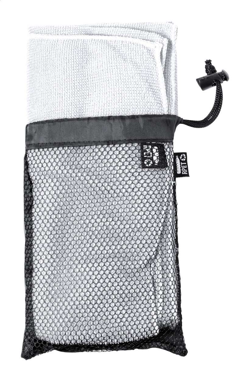 Asciugamano in microfibra di poliestere RPET da 160 g/m² con etichetta distintiva RPET.