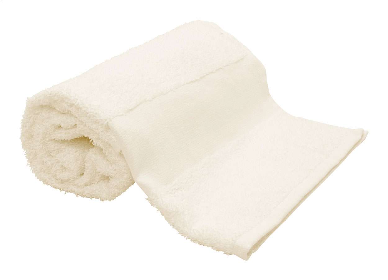 Asciugamano in 100% spugna di cotone da 360 g/m²,con asola e bordo personalizzabile.