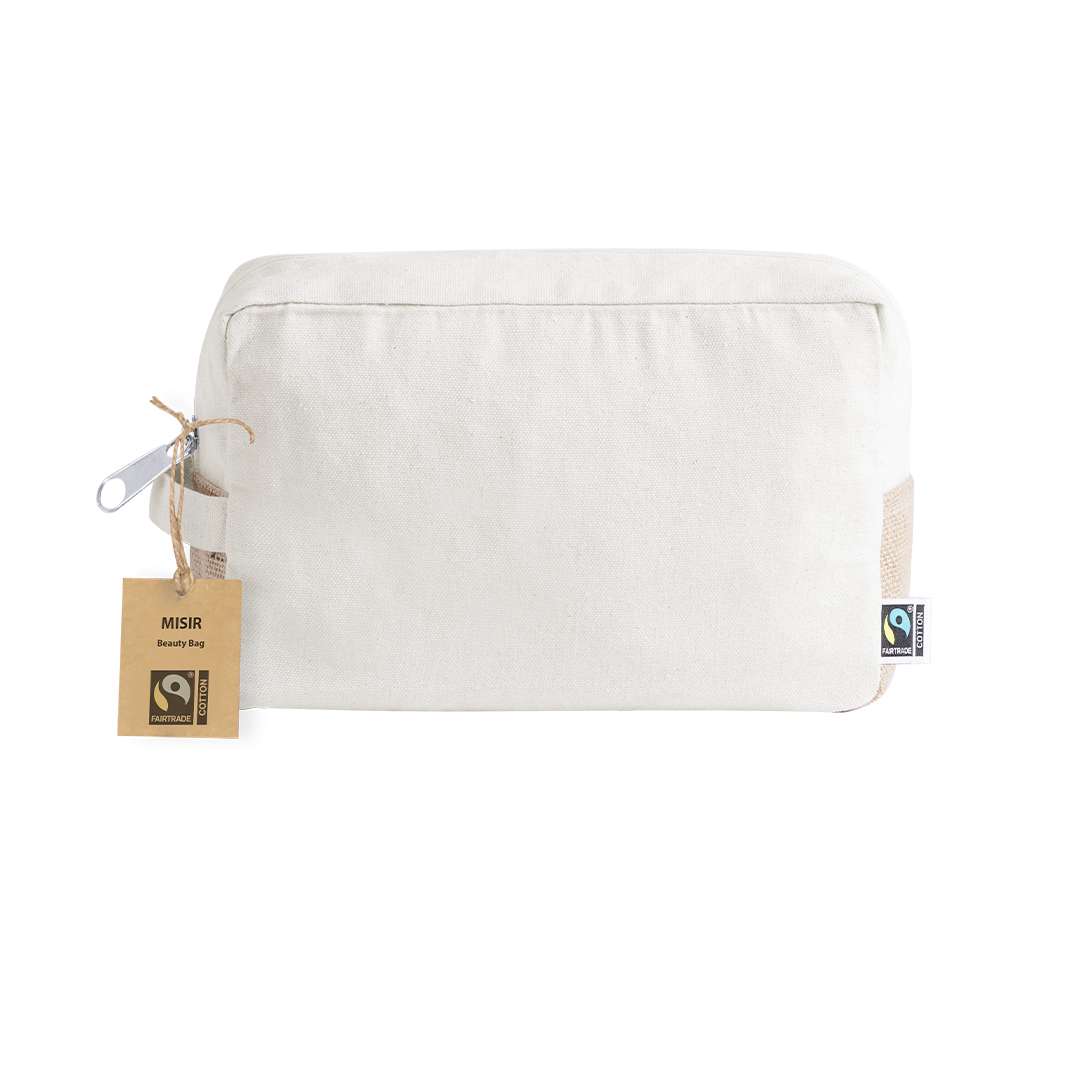 Beauty Case Fairtrade della linea natura, realizzata in cotone. Scomparto principale con chiusura a zip e manico coordinato, con lati e base rinforzati in juta. In elegante tonalità naturale. Include etichetta Fairtrade ed etichetta con logo su cartone riciclato.Certificato Fairtrade, un sistema alternativo al commercio convenzionale che mira a promuovere lo sviluppo dei popoli e la lotta alla povertà.