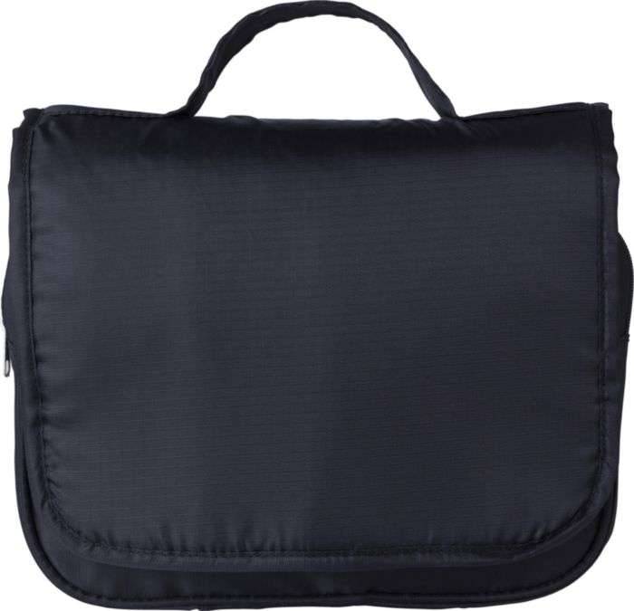 Necessaire da viaggio in poliestere 210 D ripstop, gancio per appenderlo, vanno con chiusura lampo sulla parte superiore quando aperta, tasca con rete grande e piccola con chiusura lampo, custodia sul retro, maniglia per il trasporto