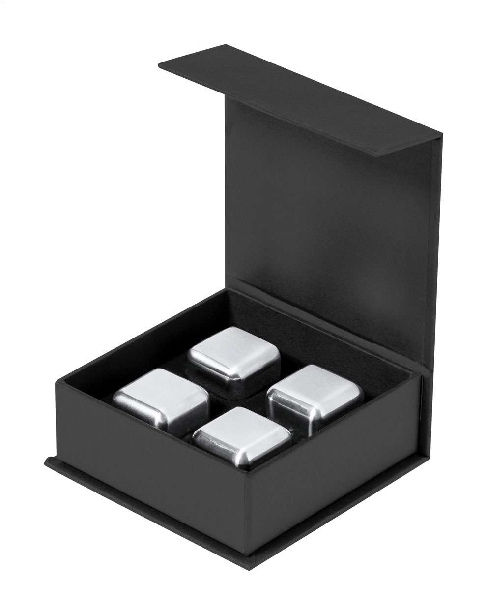 Set di 4 cubetti di ghiaccio riutilizzabili in acciaio inossidabile e confezione regalo nera.