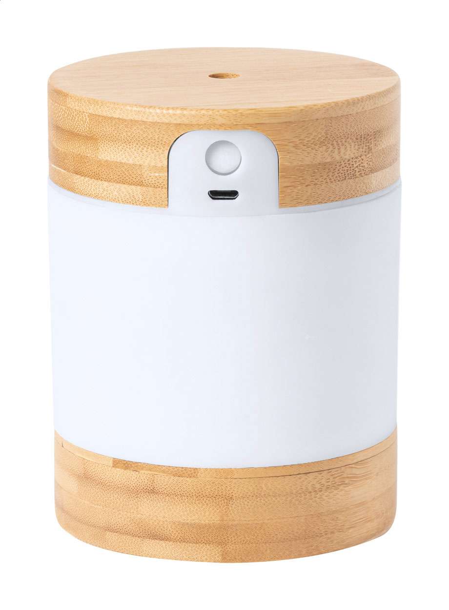 Umidificatore da scrivania in bambù con luce LED. Incluso cavo di alimentazione USB. Capacità del serbatoio: 250 ml. In scatola di carta kraft.