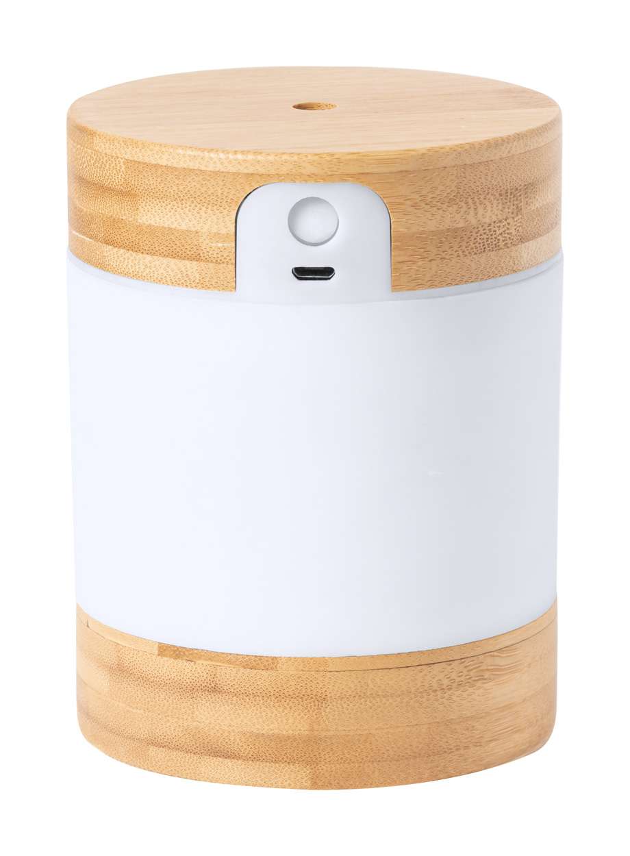 Umidificatore da scrivania in bambù con luce LED. Incluso cavo di alimentazione USB. Capacità del serbatoio: 250 ml. In scatola di carta kraft.