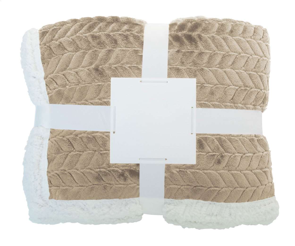 Coperta in RPET a doppio strato con motivo jacquard. Con pile di flanella RPET da 240 g/m² e fodera reversibile in pile sherpa RPET da 210 g/m². Confezionata con nastro e cartoncino stampabile.