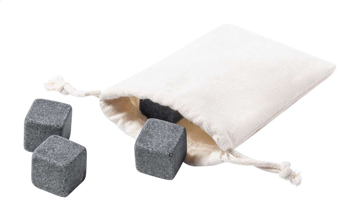 Set di 4 cubetti ghiaccio in pietra riutilizzabili, in sacchetto di cotone.