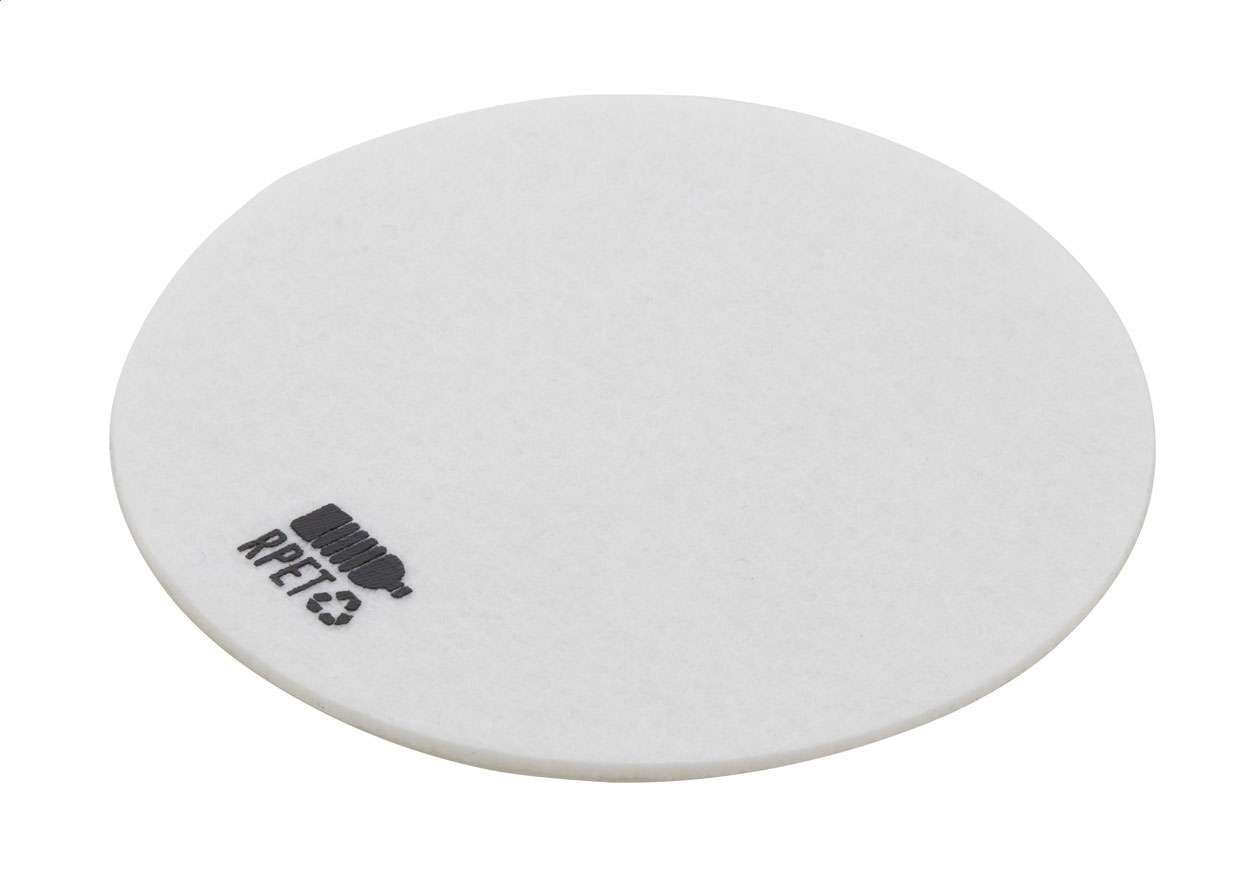 Sottobicchiere rotondo in feltro RPET, con stampa marchio RPET.