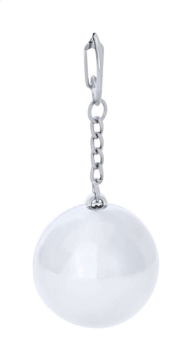 Balsamo per le labbra all'aroma di vaniglia con protezione SPF15, in contenitore rotondo di colore metallizzato e portachiavi in metallo.