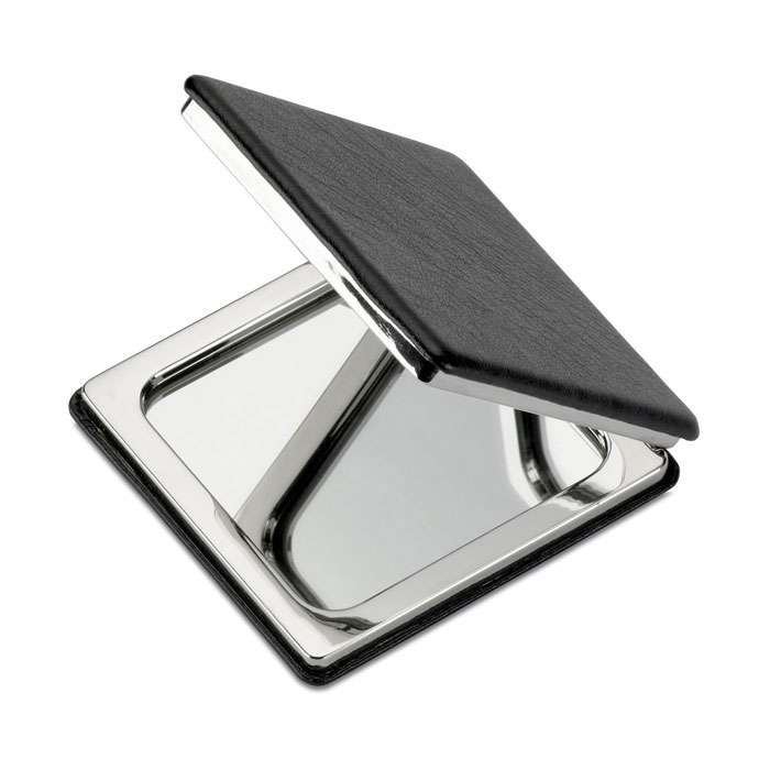 Doppio specchietto da borsa quadrato con chiusura magnetica. In PU.