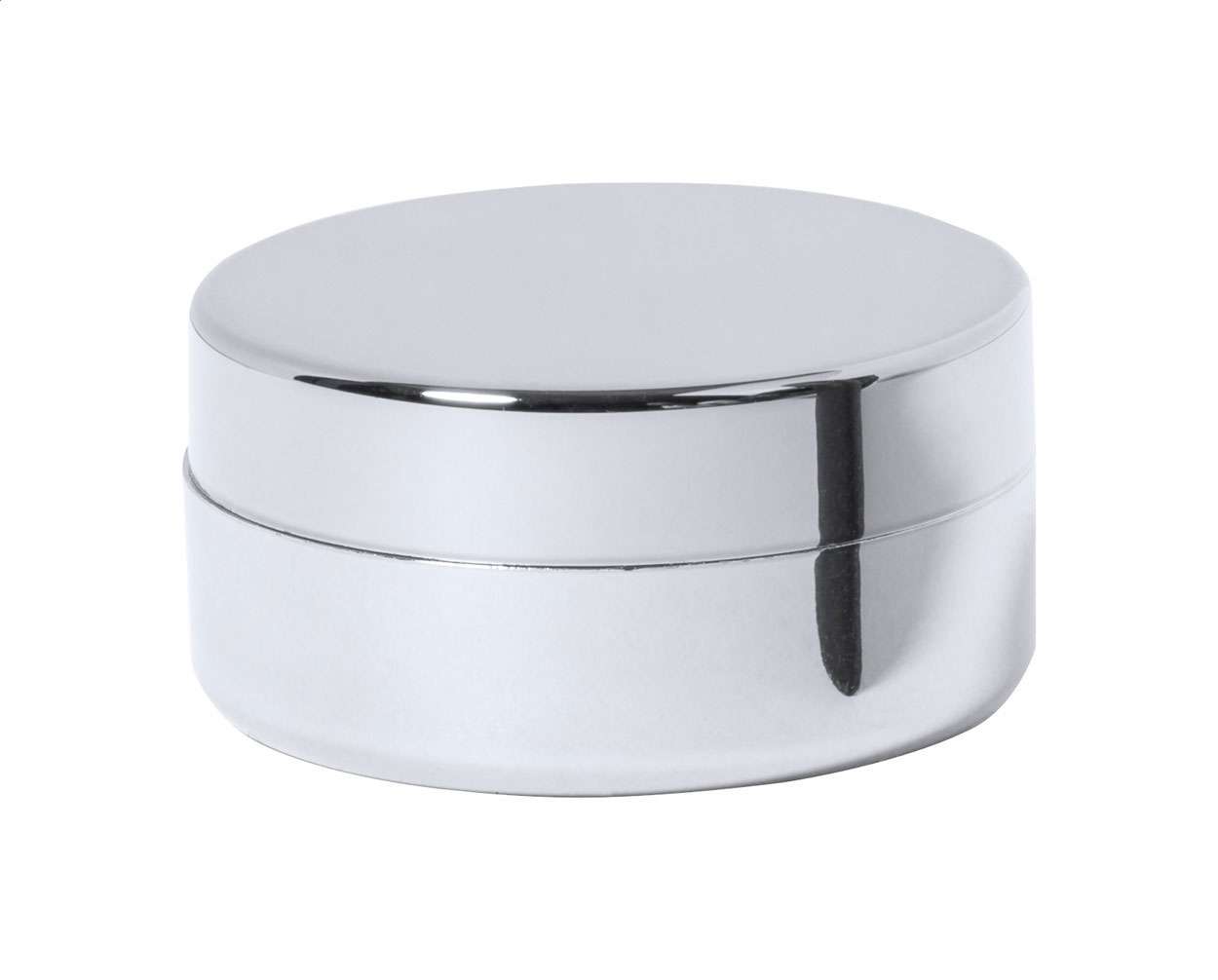 Balsamo per labbra alla vaniglia, indice di protezione SPF15 in contenitore di plastica metallizzata.
