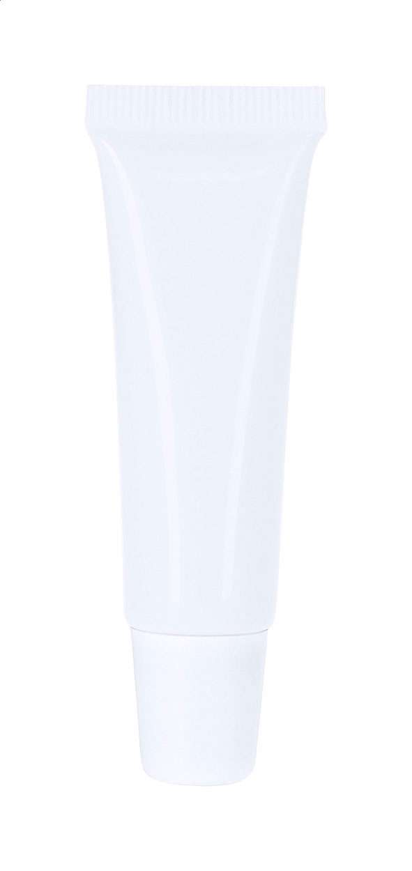 Balsamo per le labbra all'aroma di vaniglia in tubetto di plastica, con protezione SPF15.