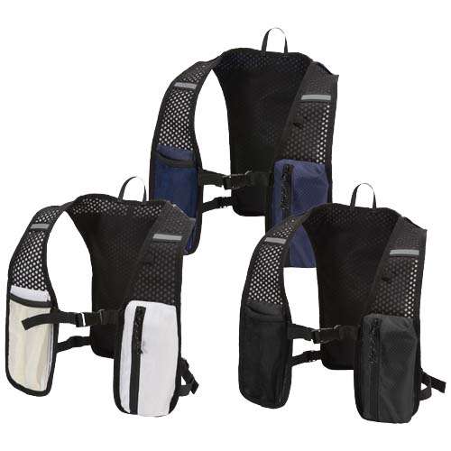 Il gilet per la corsa Nomad con zaino per l'idratazione è realizzato in tessuto ripstop riciclato certificato GRS con finitura idrorepellente. Include una fodera in PET riciclato certificato GRS ed elementi catarifrangenti per una migliore visibilità. Questo zaino è stato progettato per la corsa su lunghe distanze, i sentieri e le attività all'aperto. La parte posteriore del gilet è dotata di un design in rete traspirante per il massimo comfort. Include spallacci regolabili e due tasche anteriori sul petto per riporre le bottiglie, i piccoli accessori o il telefono cellulare. All'interno è presente uno scomparto separato adatto per uno zaino per l'idratazione da 1,5 litri (non incluso). Capacità: 5 litri.
