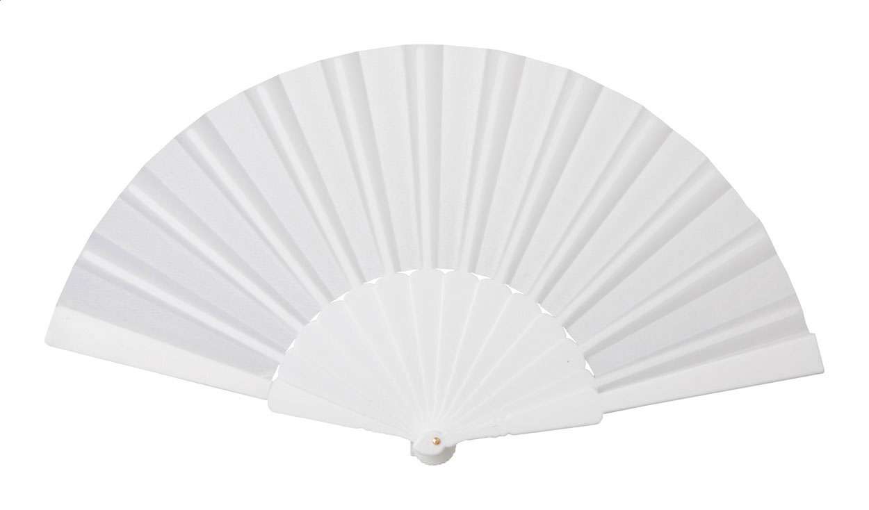 Ventaglio in tessuto con bastoncino in plastica.