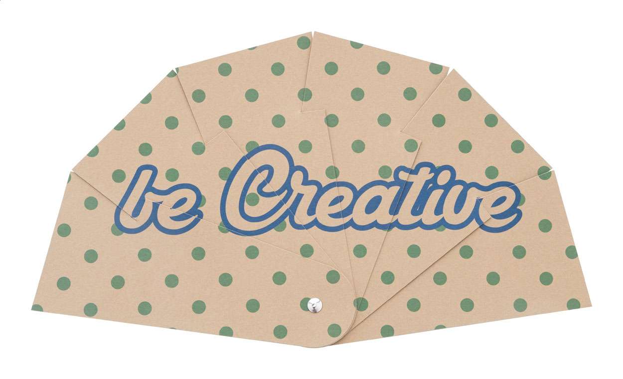 Ventaglio in carta kraft pieghevole con grafica a colori. Il costo comprende la stampa digitale su entrambi i lati. MOQ: 100pz.