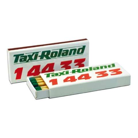 Scatolina dalle dimensioni 56x24x7 mm, con alloggio bianco contenente 10 fiammiferi di tipo svedese, personalizzata in quadricromia sul lato superiore.