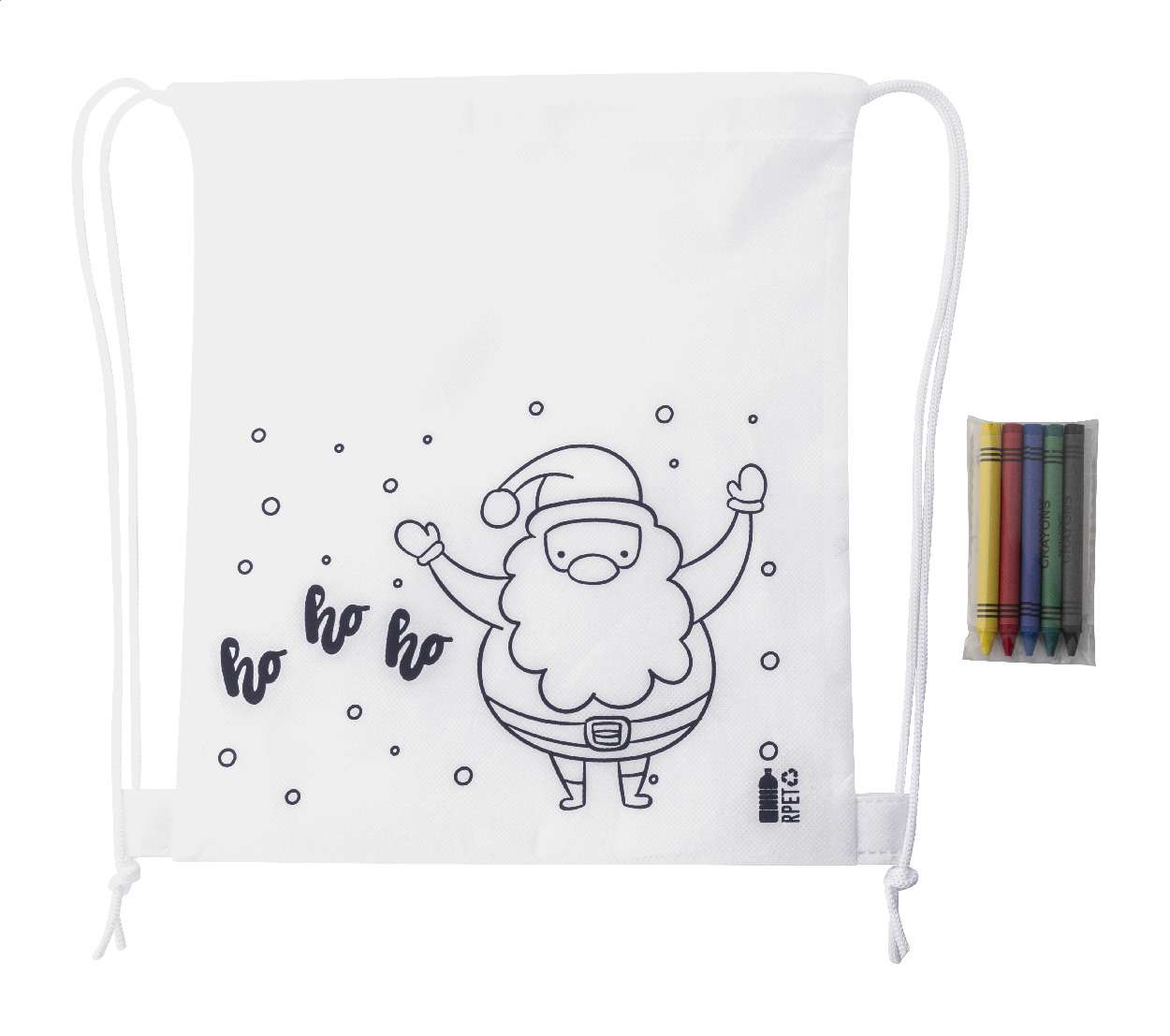 Sacca a tema natalizio da colorare in tessuto non tessuto RPET con 5 pastelli.