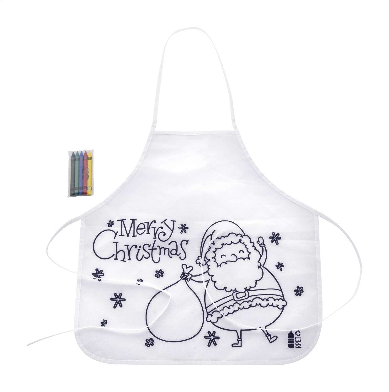 Grembiule a tema natalizio da colorare in tessuto non tessuto RPET con 5 pastelli.