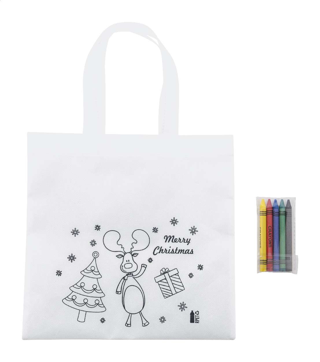 Borsa per la spesa a tema natalizio da colorare in tessuto non tessuto RPET con 5 pastelli.