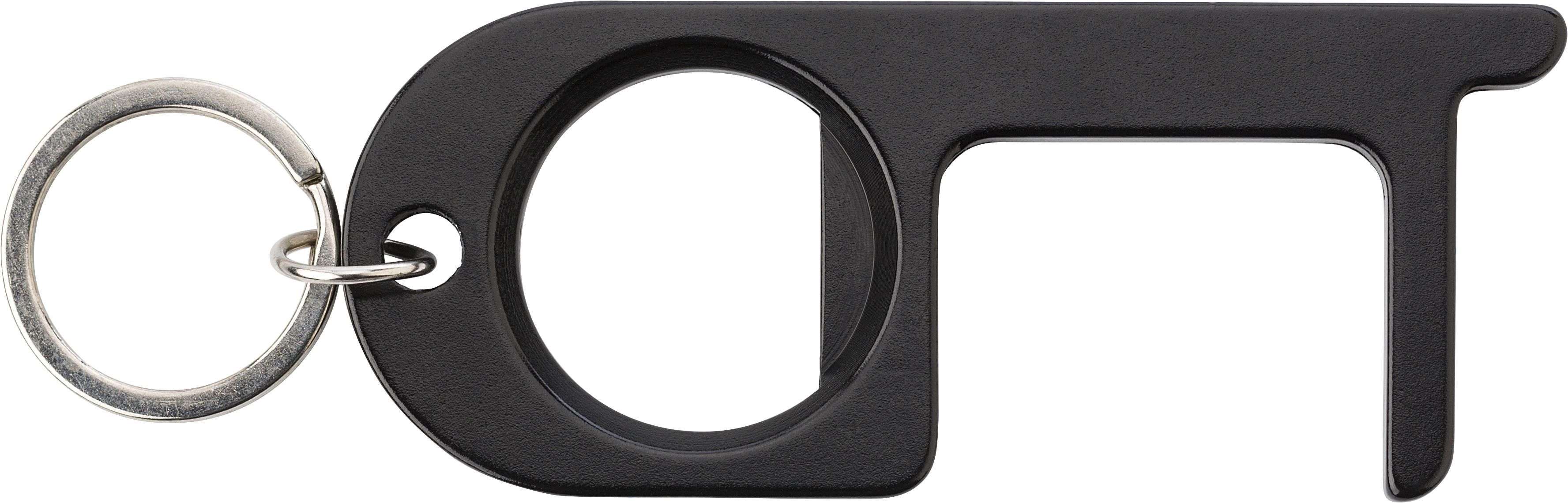 Apriporta in alluminio con funzione apribottiglie, utilizzabile per aprire le porte oppure premere i pulsanti in pubblico senza doverli toccare