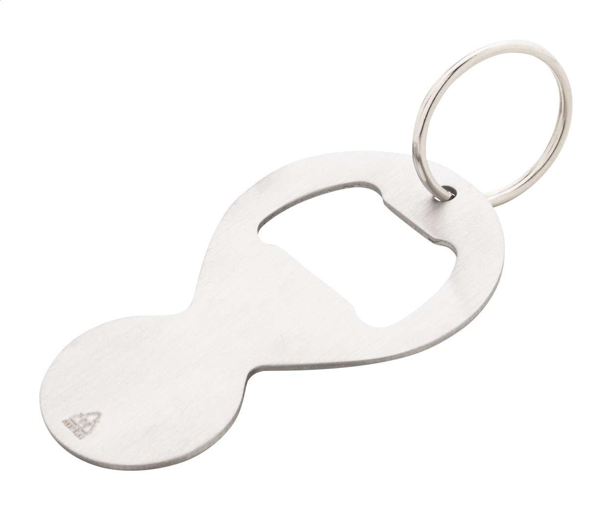 Portachiavi in acciaio riciclato con apribottiglie ed inserto per il carrello della spesa.