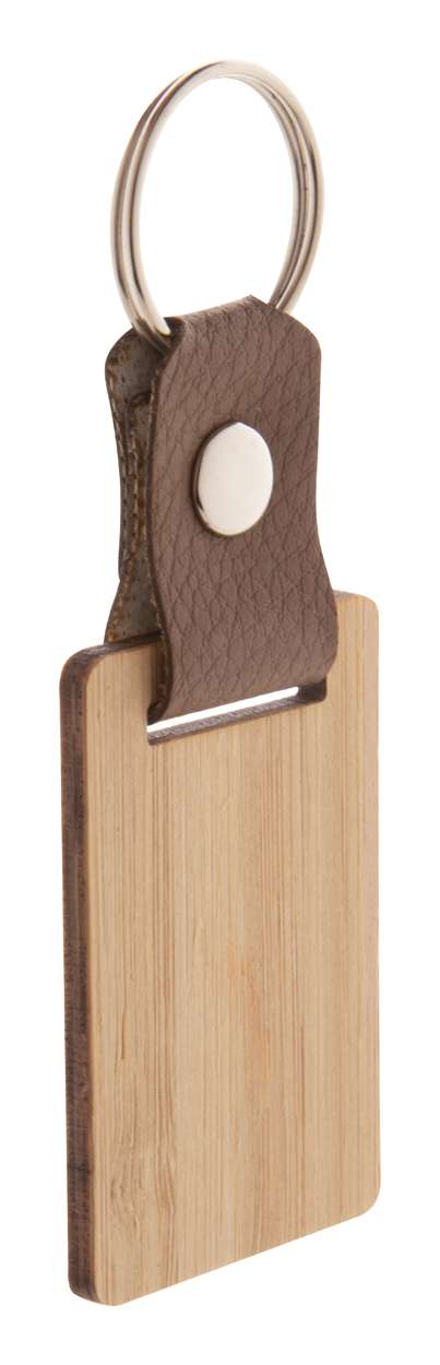 Portachiavi in compensato di bambù e pelle PU con anello in metallo.