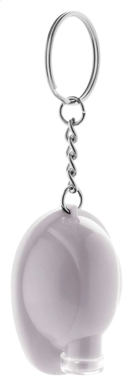 Portachiavi a forma di casco di sicurezza in plastica con luce a LED. Con batteria a bottone.